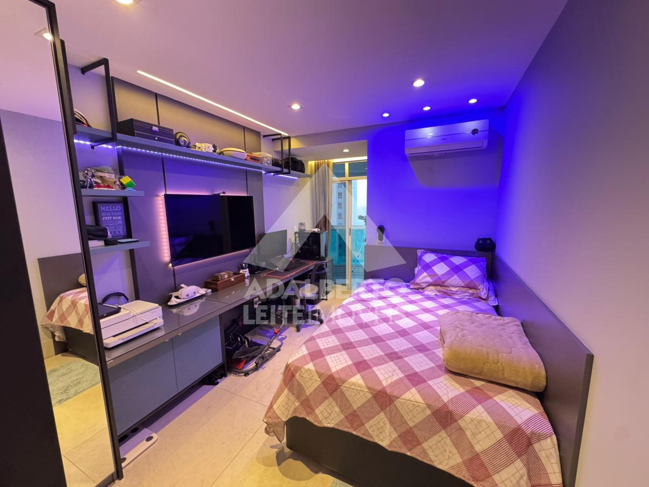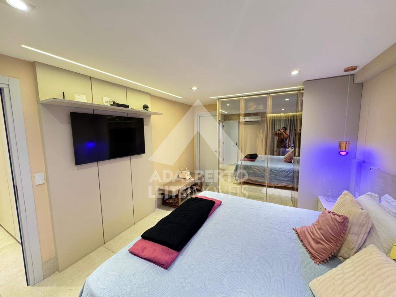Andar alto, 4 vagas, Varanda Gourmet, sala em 2 ambientes, 3 suítes todas com varanda, WC social ou lavabo, cozinha, área de serviço e WC de serviço. Área de lazer completa. Apartamento climatizado e todo reformado com Projetados, sistema de automação ALEXIA, portas em ACM, Móveis Projetados Evviva e Porcelanato Porto Belo.